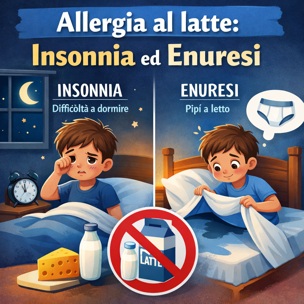 La maggior parte dei bambini malati di enuresi soffre di allergie alimentari nascoste. Le reazioni allergiche possono irritare la parete della vescica e provocare disturbi di sonno come l’enuresi. Una volta guarita l’allergia alimentare, il bambino dorme più tranquillo e può svegliarsi per andare in tempo in bagno.