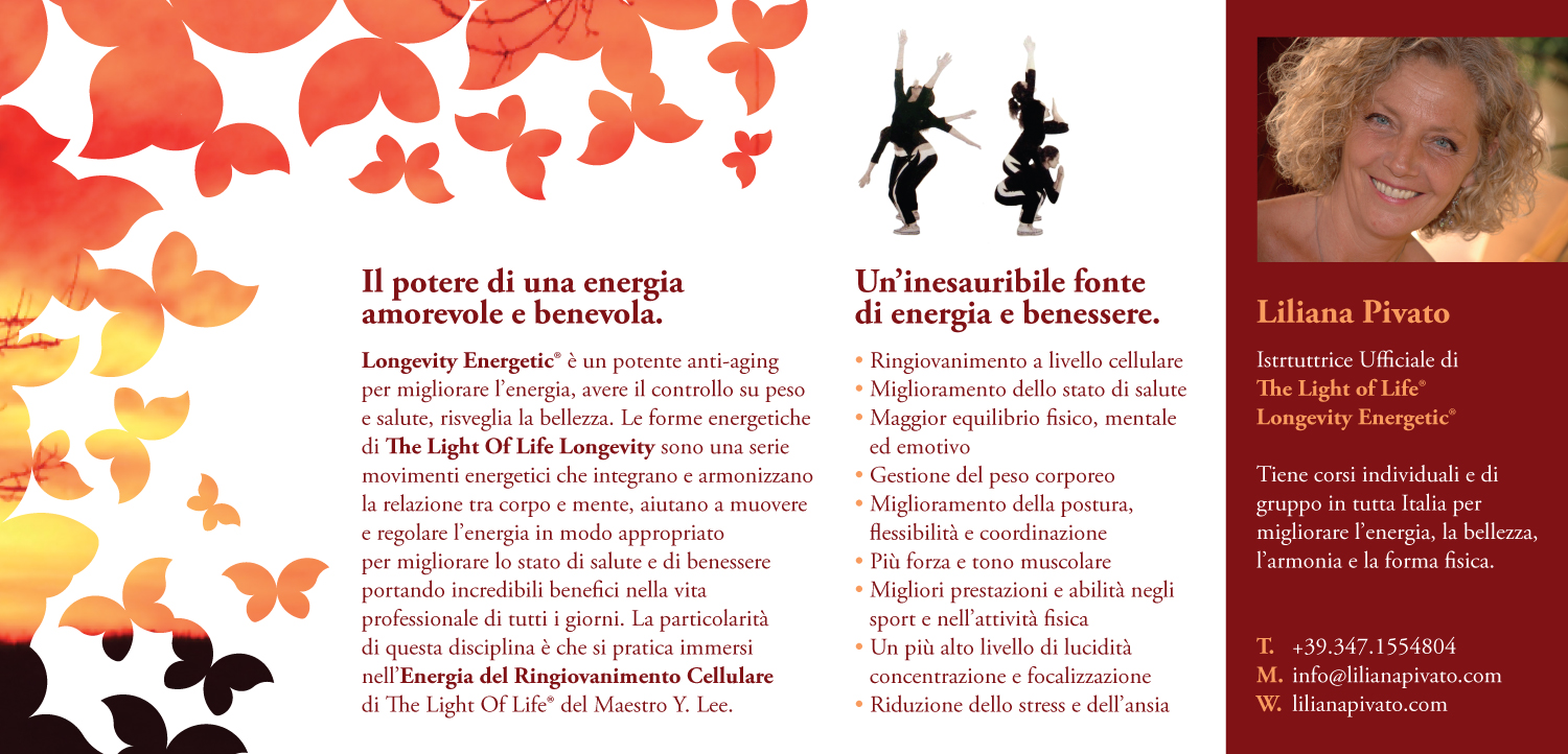 Ma dopo questa breve introduzione lascio la parola alla mia amica Liliana Pivato, perché chi meglio di lei che è un’istruttrice Longevity Energetic ci può dare qualche informazione: