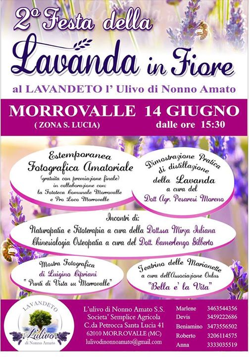 Vi aspettiamo anche quest’anno alla festa della “Lavanda in Fiore” a Morrovalle presso il Lavandeto L’Ulivo di Nonno Amato, domenica 19 giugno 2016 per sentire da vicino “lo spirito” della lavanda!